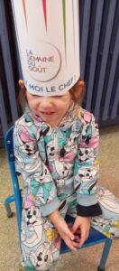 À l’occasion de la Semaine du Goût, nous avons eu la chance d’accueillir le papa de Romy, pâtissier de métier, au sein de nos classes de maternelle le jeudi 16 et le vendredi 17 octobre. Les élèves ont pu enfiler leur toque et réaliser une délicieuse tarte aux pommes, en clin d’œil au spectacle du 6 octobre !
